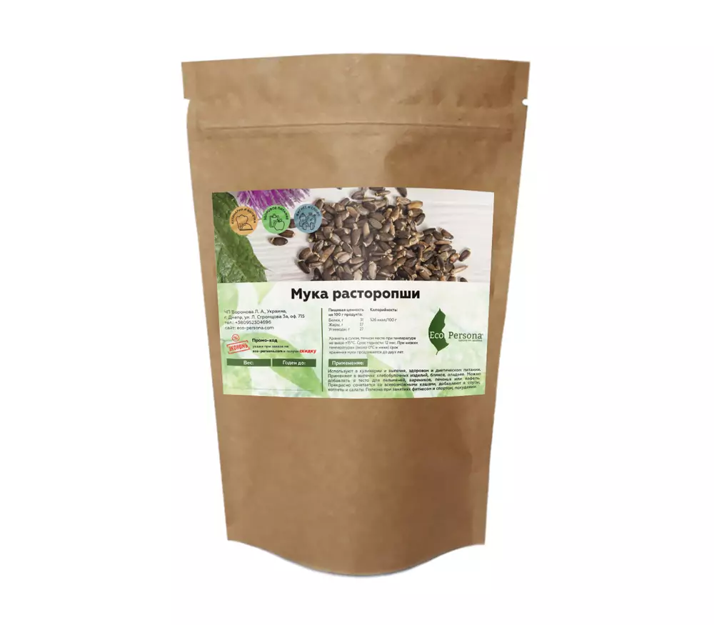 Надо отметить, что содержание жира в муке расторопши невелико, так как порошок производится из семян после выжимки растительного масла.